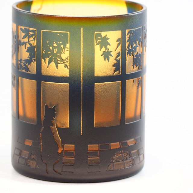 【管理番号】ATL01 【分類】 猫硝子 【ガラス】国産 【個数 】1個 【サイズ】口部φ75mm×H90mm 【技法】砂彫刻 【猫柄】夕焼け猫 【納期】5日(入金日より) 【仕上げ】つや消しマット特別仕上げ