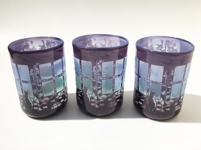 ※ご入金後、ご注文が確定した事をお知らせする詳細のメールが自動で届きます。届かない場合はこのSHOP上(BASE)にてお問い合わせ下さい。 納期日は作品タイトル、概要欄に書いて有ります。 ※※※※※※※ 個展やイベントでしか販売されない多層パウダー被せ(5色)という技法の作品です。 制作に時間がかかる為、少数限定となり真っ先に売切れてしまうものです。 是非この機会に。 【分類】 猫硝子 【個数 】1個 【納期 】30日(ご入金確認日より発送迄) 【技法 】宙吹き 【色 】多層パウダー被せ・・・数色のガラスパウダーを重ね、彫刻の深さによって色が変わる。 【サイズ】口径Φ75mm×H100mm(手づくりの為若干差異あり) 【猫柄 】一日千秋/帰りを待つ猫 『一日千秋』(いちじつせんしゅう)とは... 非常に待ち遠しいことの例え。 ある物事や、人が早く来てほしいと願う想いが非常に強いこと。 一日が千年もの様に長く思われる程の意味から。 日本に古くからある四字熟語の『一日千秋』からイメージを 膨らましデザイン。 紅葉が深まる秋の頃。 窓から御主人の帰りを待ち侘びている猫の後姿。 宵闇に満月も浮かび上がり、猫は何を想うだろうか。 このグラスを手にした瞬間から物語りは始まる。