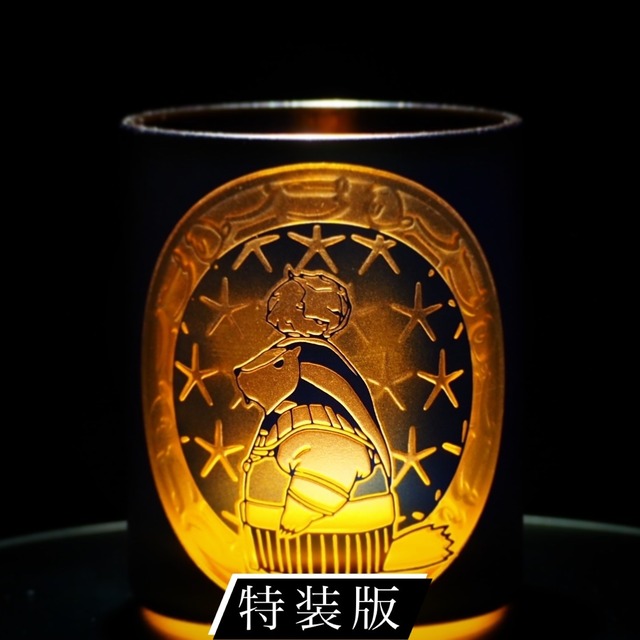【個数】1個 【サイズ】φ75mm×90mm 【納期】5日(入金日より) 【技法】金剛砂彫刻(サンドブラスト) 【柄】マアモ神+ヒエログリフ[特装版] デザフェスinマーモット村にて初お披露目された 『マアモ神+ヒエログリフ』 のグラスが遂に通販に登場しました。しゅうなめこ×可夜のコラボ作品です。 [通常版]と[特装版](透かし彫り+グラデーション)の2タイプを御用意しました。 こちらの購入ページは特装版となります。 ヒエログリフ(古代エジプト文字)の部分 を透かし彫りと言う技法で立体感のある透明文字化し、星空(大の字柄の部分)をぼかしというテクニックで美しいグラデーションになるようにしました。 瑠璃とオレンジの2色という限られた条件でも高度なテクニックで奥行きを出す事が出来ます。 通常盤より二手間も三手間もかけた特別仕様となりました。 古代エジプト神話にマーモットがいたら…と言うif世界を実現しました。 是非この機会にどうぞ!