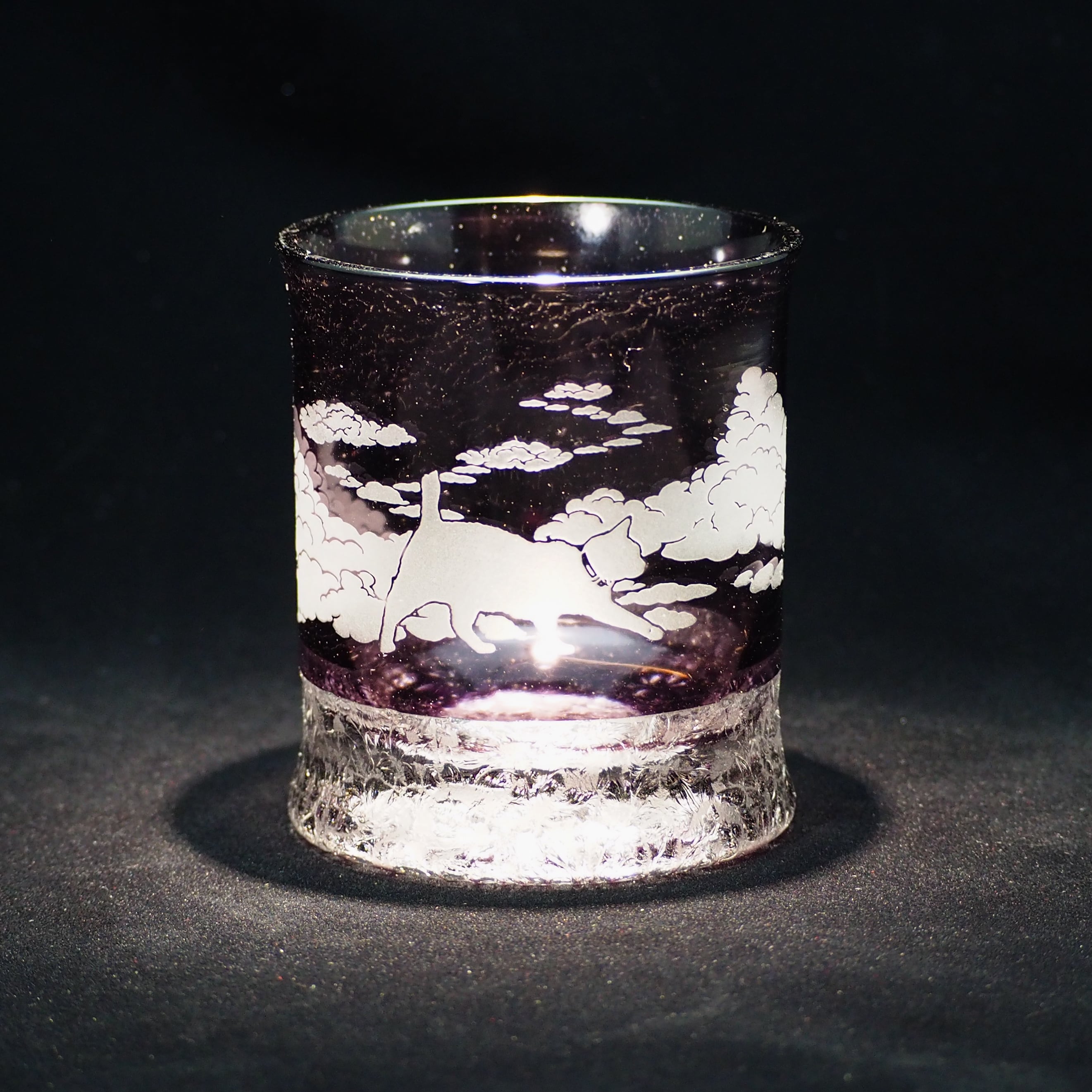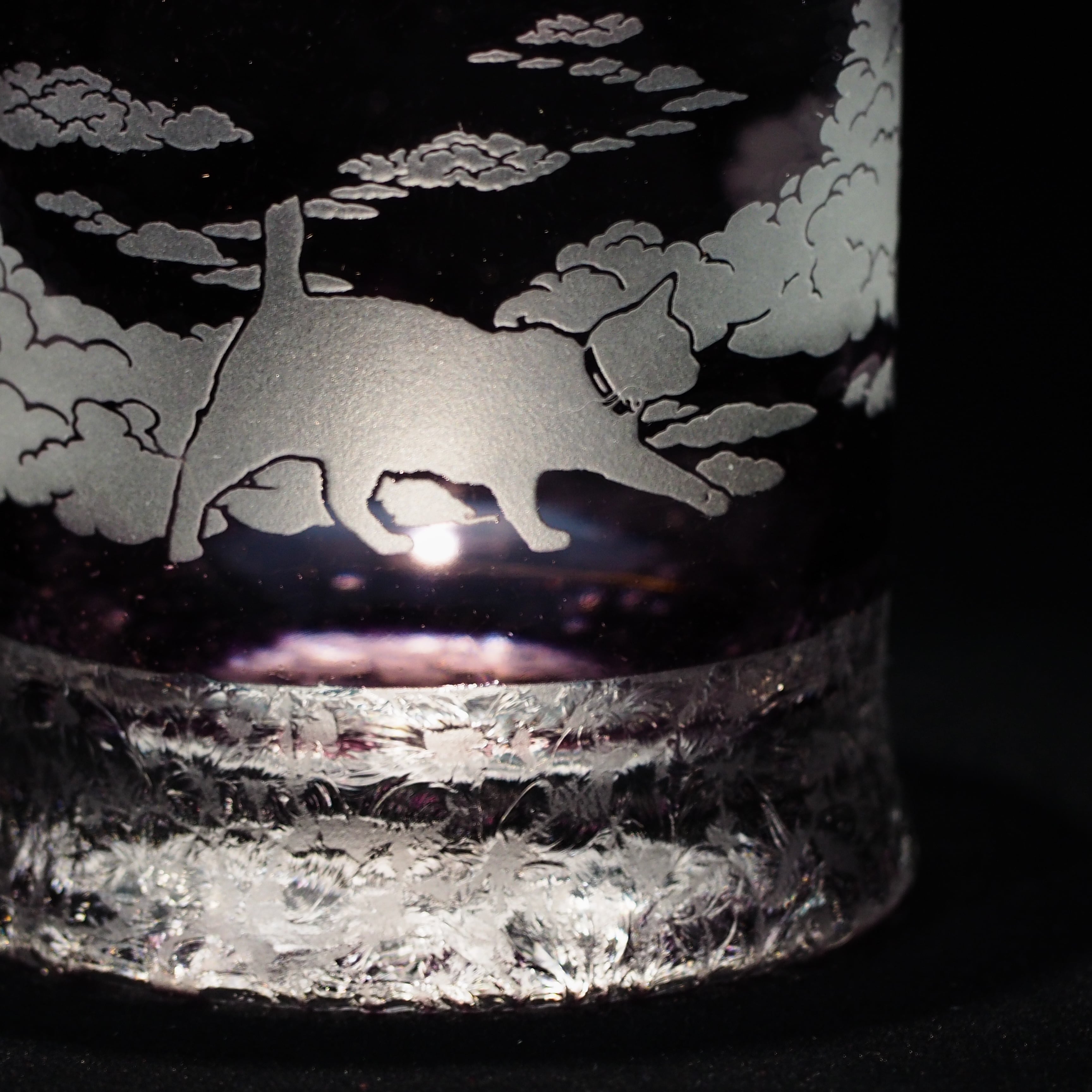 【完成品】雲渡り猫/結霜グラス【紫】
