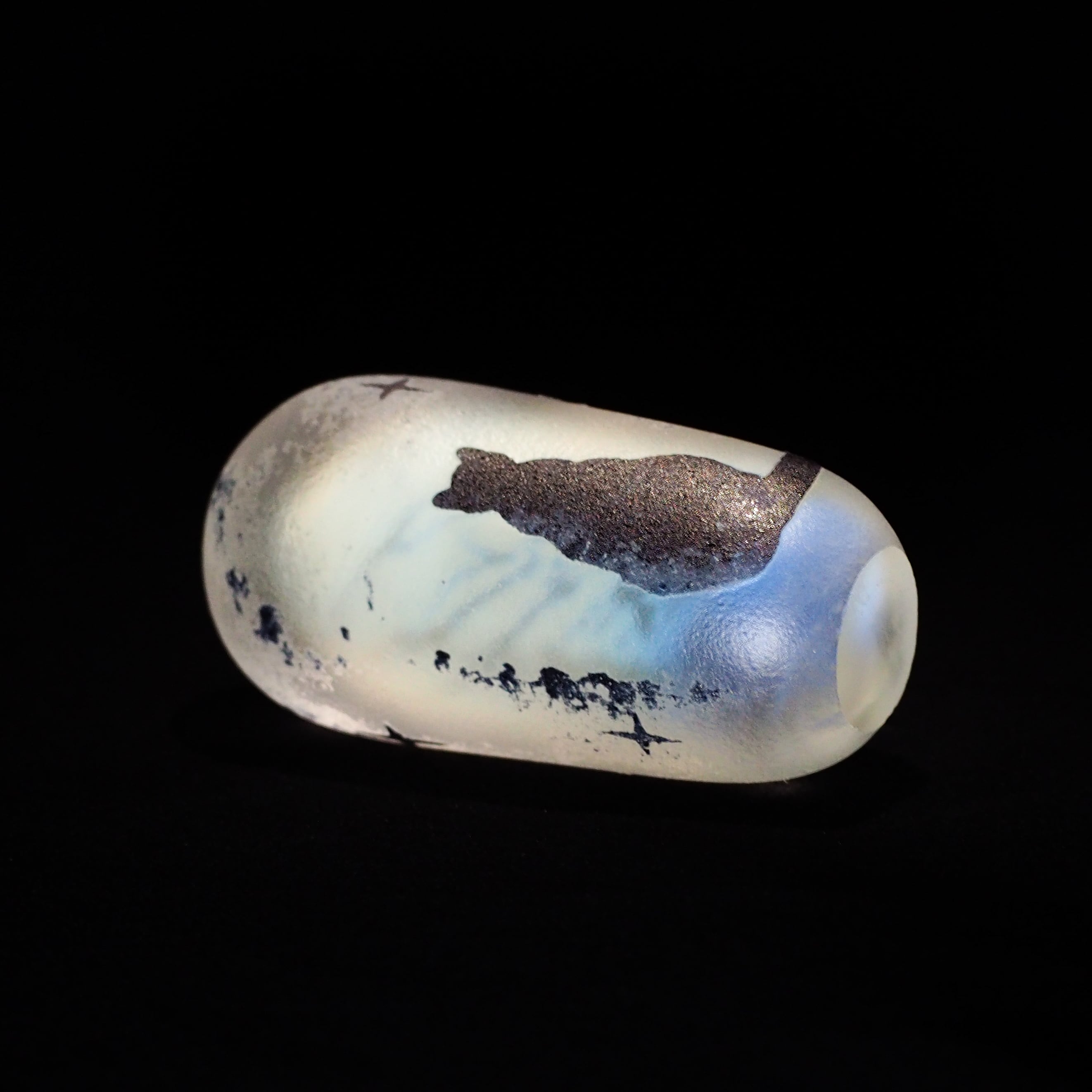 本作は、銀箔の蒼を用いた初のガラスオブジェとして生まれました。