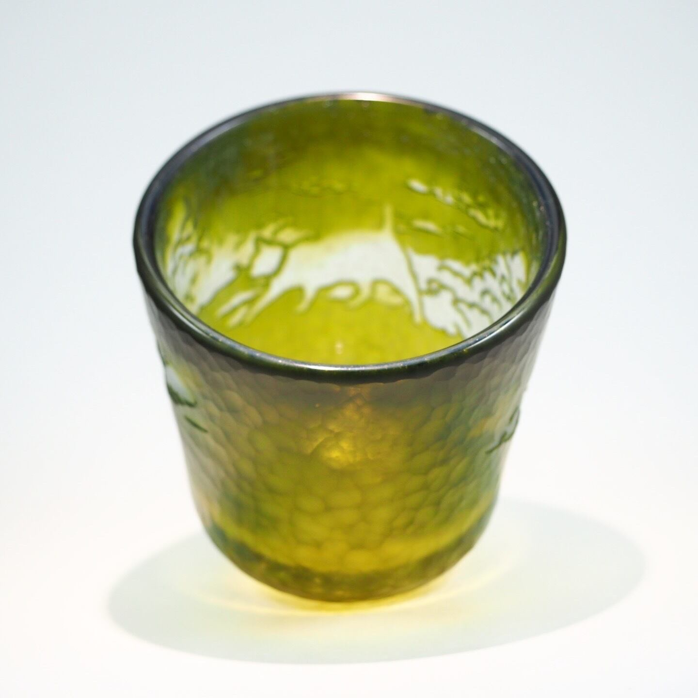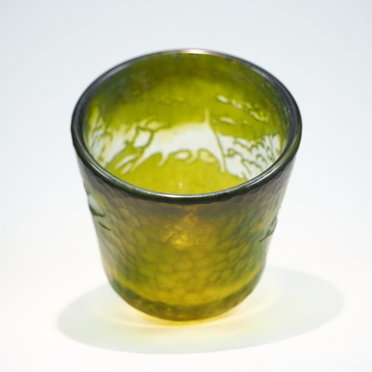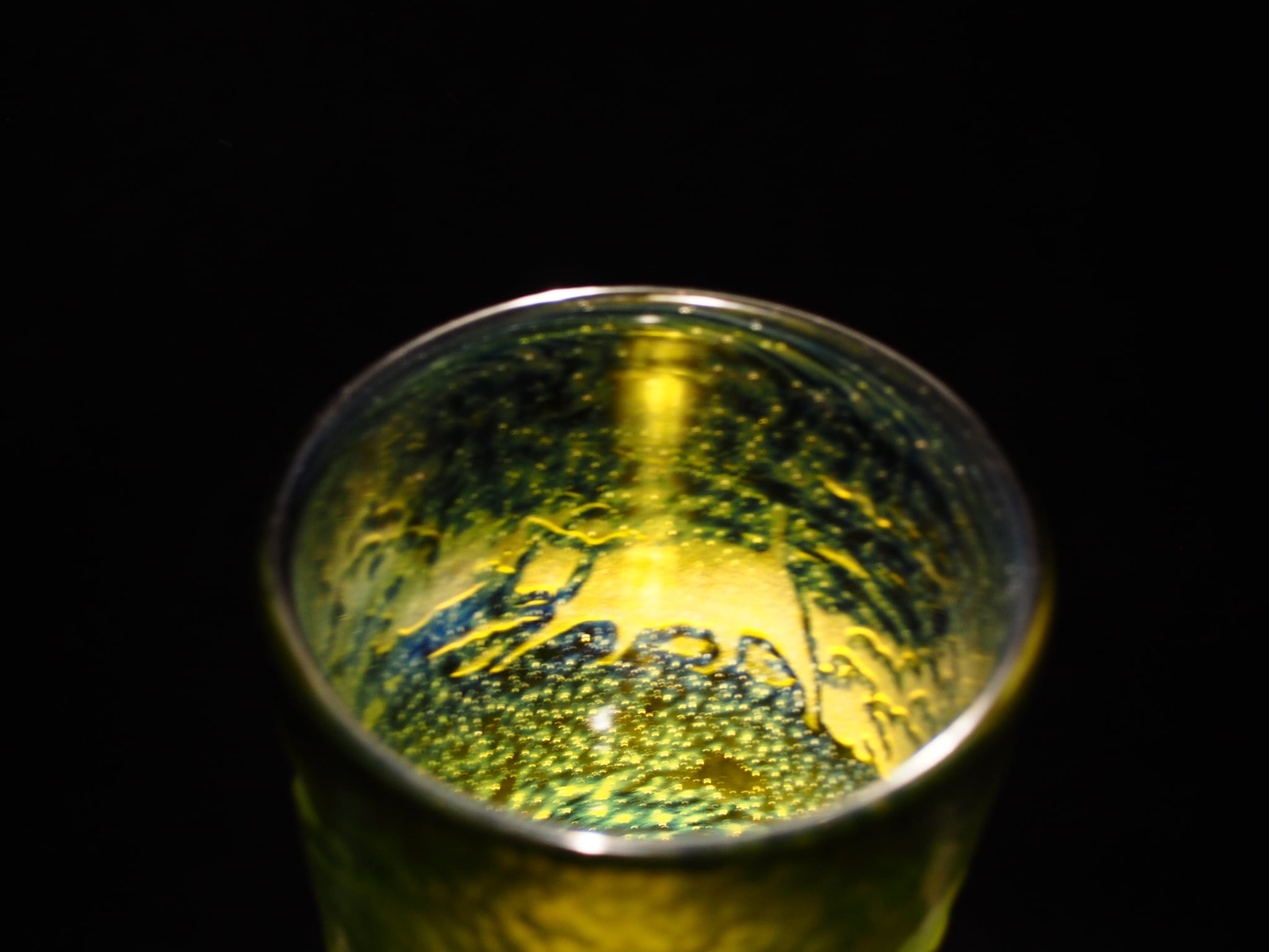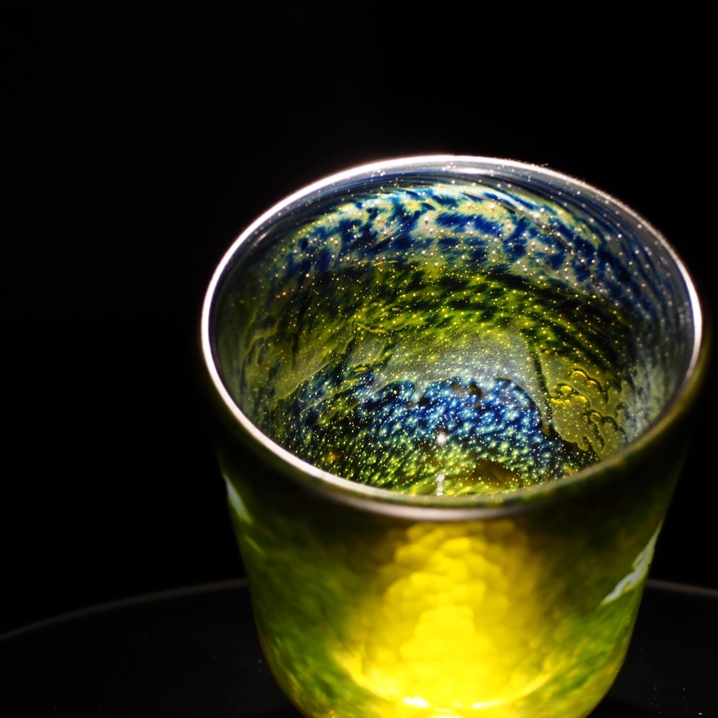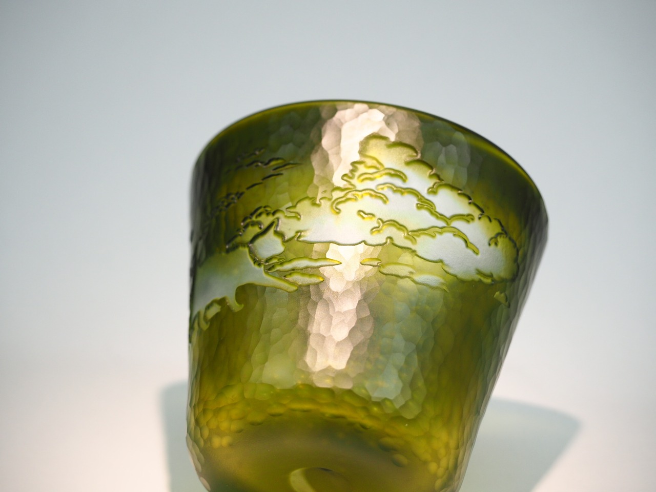 猫デザインは勿論ですが宙吹きから砂彫刻(サンドブラスト)、カットに至る3つの技法を可夜自身で手がけ生み出された逸品です。