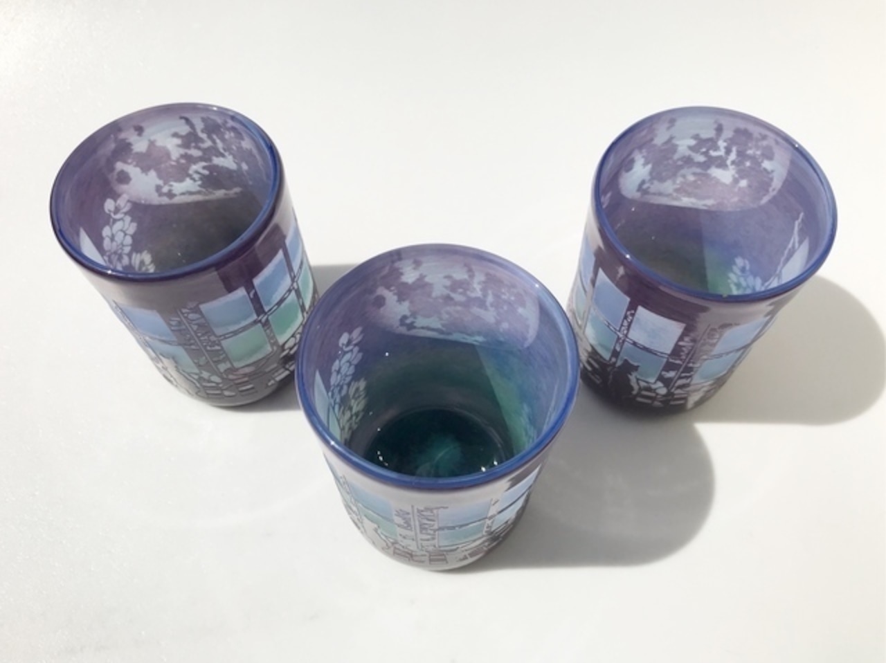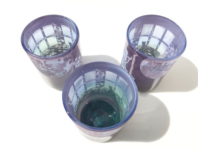 【色 】多層パウダー被せ・・・数色のガラスパウダーを重ね、彫刻の深さによって色が変わる。