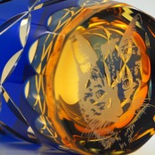 底面の被せの色を削り取り、磨き上げることで夕焼け色の硝子の輝きを更に増しています。