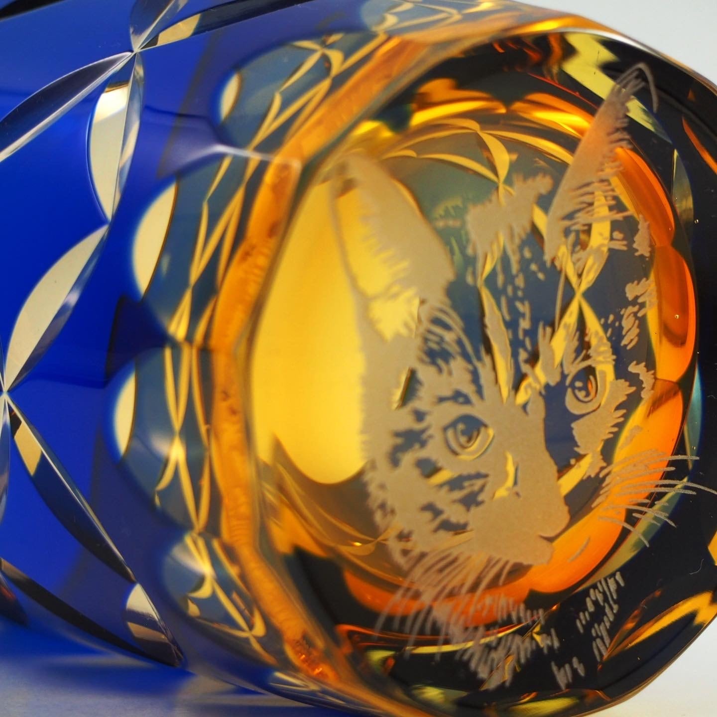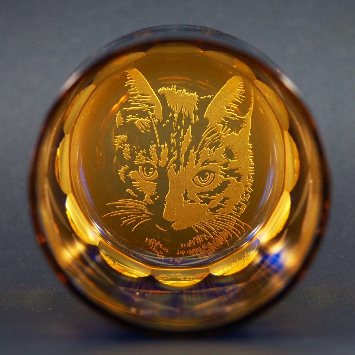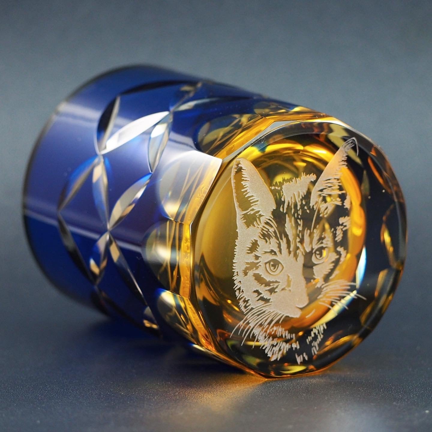 【技法】砂彫刻(底の猫デザイン)+切子(側面)